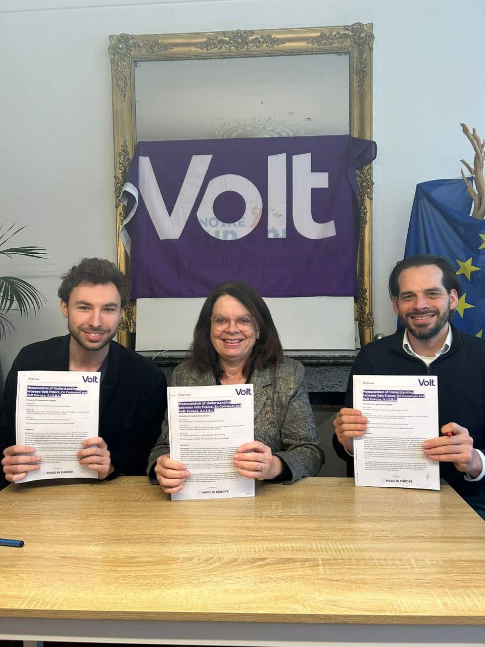 En Commun!, représenté par sa vice-présidente Mireille Clapot, signe le 14 février 2026 un partenariat avec Volt Europa et Volt France en vue de la création d'un parti européen.
